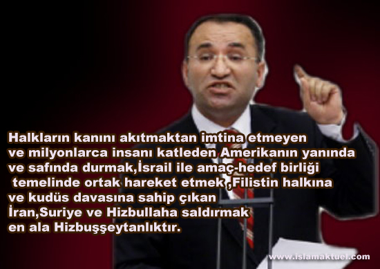 Halkların kanını akıtmaktan imtina etmeyen ve milyonlarca insanı katleden Amerikanın yanında ve safında durmak,İsrail ile amaç-hedef birliği temelinde ortak hareket etmek ,Filistin halkına ve kudüs davasına sahip çıkan İran,Suriye ve Hizbullaha saldırmak en ala Hizbuşşeytanlıktır.