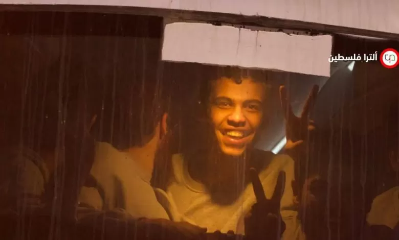 El Kassam anlaşması kapsamında serbest bırakılan çocuk mahkumlar, Beitunia’dan Ramallah’a giden otobüsün içinden zafer işareti yapıyor.