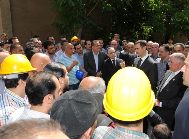 Suriye cumhurbaşkanı Beşşar Esad, Şam’da santral işçileri ile görüştü. İsteklerini dinledi ve bayramlarını kutladı.