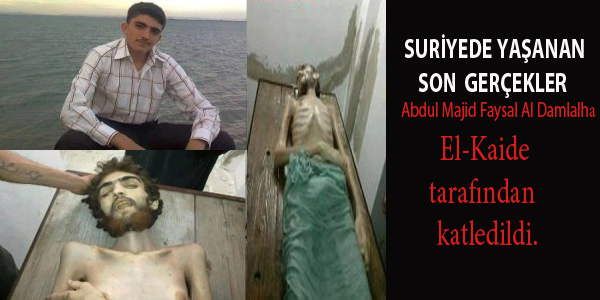Abdul Majid Faysal Al Damlalha cinayeti son iftiraların doğru olmadığını belgeliyor.Adı Abdul Majid Faysal Al Damlalha olan bu çocuğun yaşı henüz 20. Öldürülmeseydi Halep üniversitesinde Matematik bölümü okuyacaktı. Eli kanlı türkiye destekli teröristler onu bir akşam ailesinin gözü önünde kaçırdı.Zorla kendileriyle birlikte savaşması söylendi.Aksi takdirde ailesinin fidye vermesi karşılığında serbest bırakılacağı söylendi. Ailesinin parayı topladığı süre içinde kaçmayı denedi fakat başaramadı.Elleri kolları bağlı bir şekilde yıkıntılar arasında bir odada açlığa ve ölüme terkedildi. 39 gün sonra Suriye ordusu beldeyi temizlediğinde Abdul Majid Faysal Al Damlalha’nın çürümeye yüz tutmuş cesediyle karşılaştı.