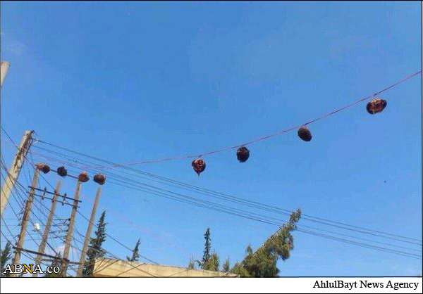 Foto (+18)-Muhaliflerin hakim olduğu Rakka bölgesinde Halkın kesik başları elektrik kablolarında