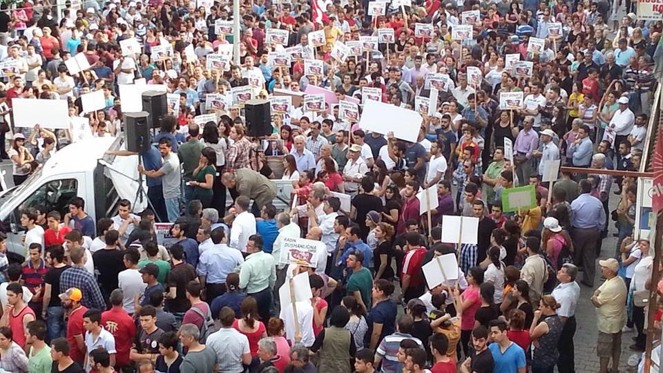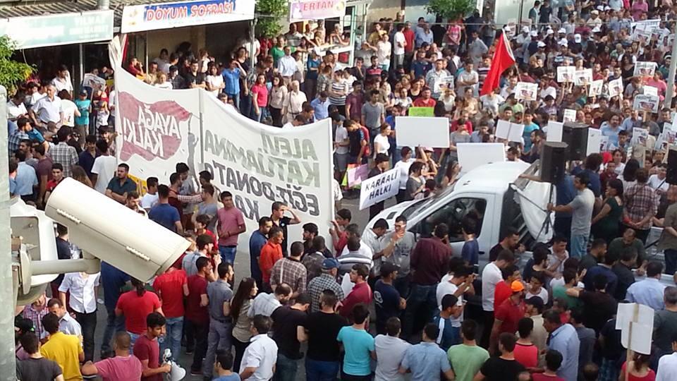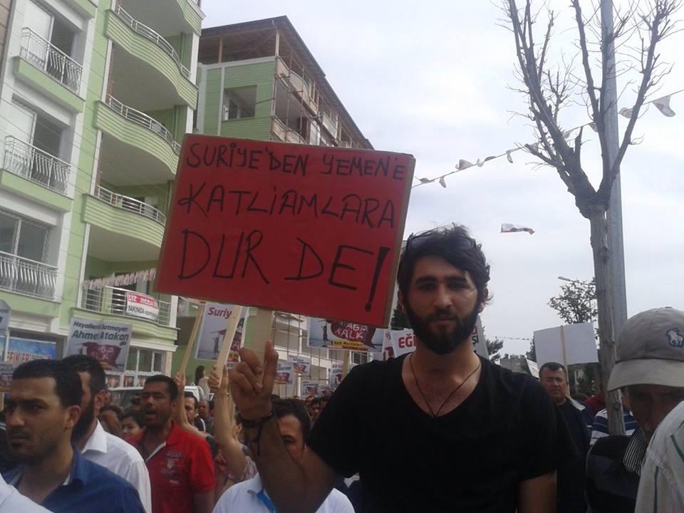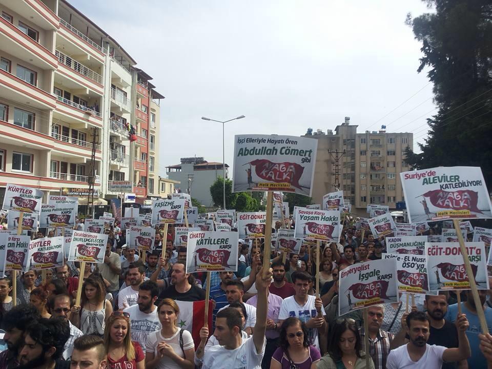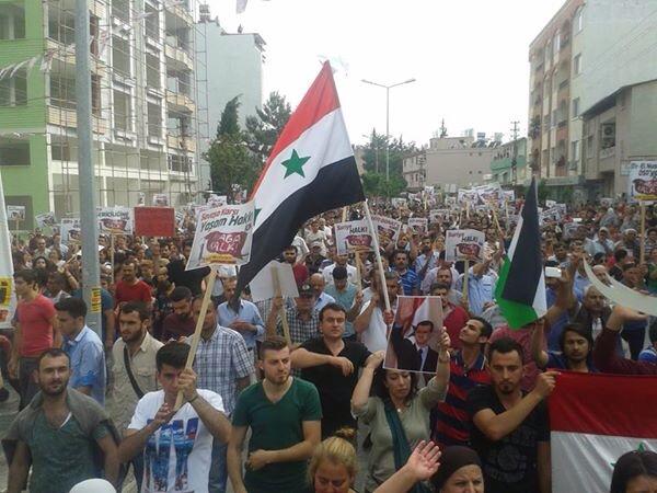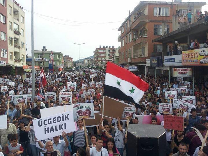Antakya-Serinyol’da binlerce kişi Suriye’ye destek için yürüdü.