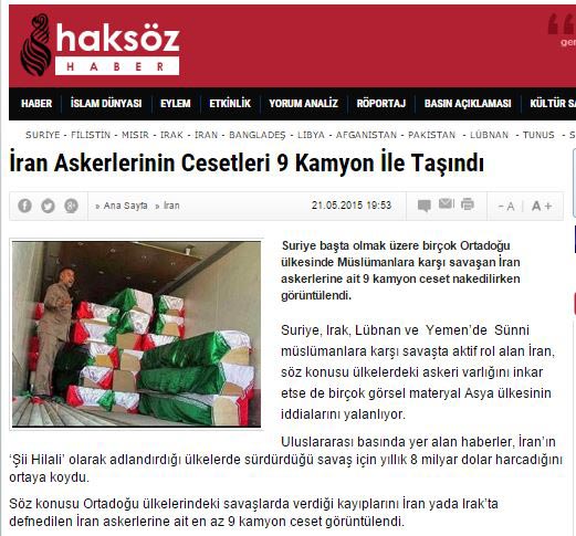 Haberin aslının, İran haber ajansı İRİB ve bir çok İran sitesinde olmasına karşın, ülkemizde başta Haber7, Timeturk, Haksozhaber,Islah haber ve aynı eksende yayın yapan, Suriye ve İran düşmanı bir çok site ve sosyal medya hesaplarında ” Suriye’de ölen İran askerleri”şeklinde verilmesi, bu site ve kuruluşların aslında kimlere hizmet ettiklerini ve yalanlarının çıkacağını bile bile okurlarını “hiç” yerine saydıklarının ispatı olmuştur.