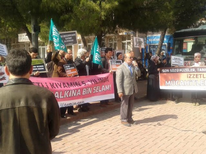 Suriye İntifadasını Selamlamak İçin Meydanlardaydık! Başlığı altında verilen ve 5. yılına yüz binlerce şehitle giren Suriye İntifadası, Türkiye’nin birçok şehrinde düzenlenen gösterilerle selamlandı şeklindeki ifade Suriye ve Irak halkına düşman Teröristleri desteklediklerini açıkça ifade eden Tekfirci zihniyetin Türkiye temsilcileri,bir defa daha ne denli yalnız,Marjinal ve halk desteğinden yoksun olduklarını göstermiş oldular.