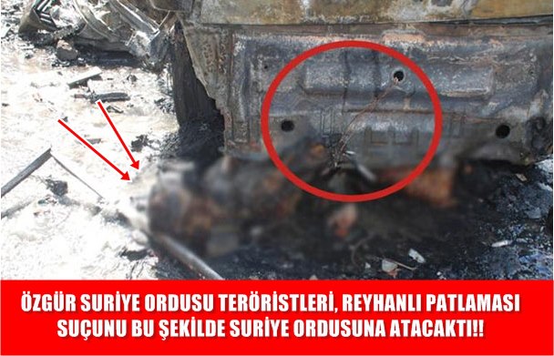 Reyhanlıdaki patlamalarda en dikkat çekici resimlerden biri,resimde bakır telle sıkı sıkıya bağlanmış bir ceset göze çarpıyor. Ceset’in Suriye askerine ait olduğu söyleniyor.Askerin cesedinin olduğu yerde bir de suriye ordusuna ait miğfer bulunuyor.