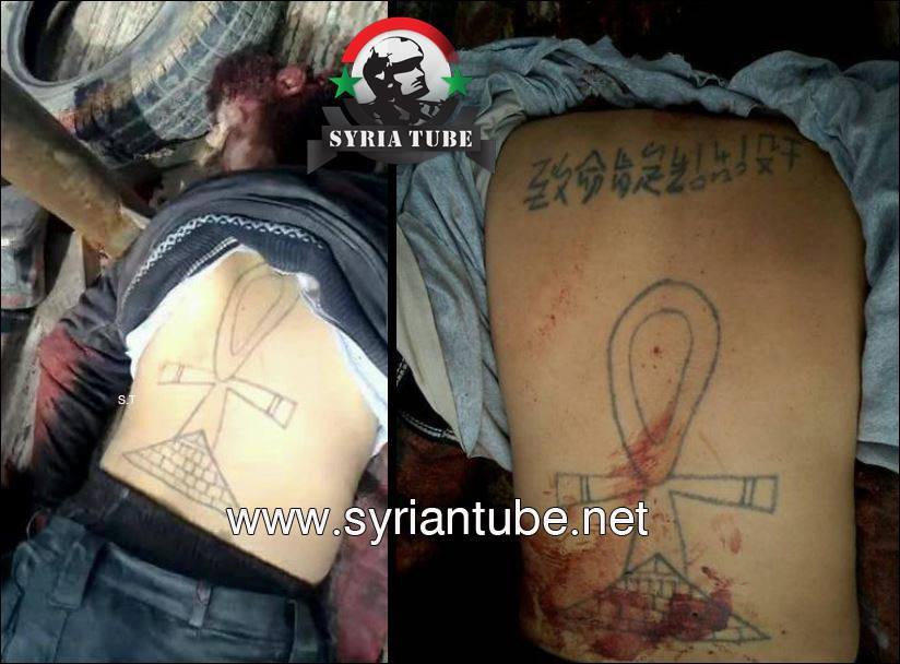 Çatışmada öldürülen bir el kaide teröristinin sırtında dövme olarak Siyonist Mason sembolleri görüldü.İsrail ajanlarının Suriye yönetimlerine karşı çatışmalarda yer aldığı ve muhalif teröristlerin eğitimlerinde bulundukları biliniyordu.