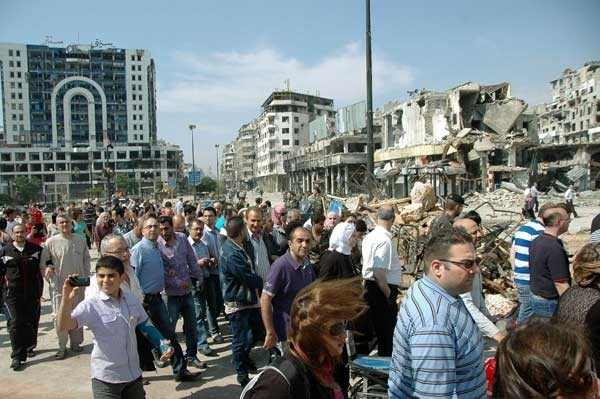 Homs halkı , sevgili vatanımıza feda olarak çağın mücrimleri ve teröristlerine karşı nasıl şehit verdiysek, eskiden olduğu gibi, herkesin sevgi ve barış kenti olarak bildiği, vatan onuru ve ulusal ilkelerini savunan kahramanlar çıkaran Homs kentinin de imarını ve inşasını yeniden yapacağız diyorlar.