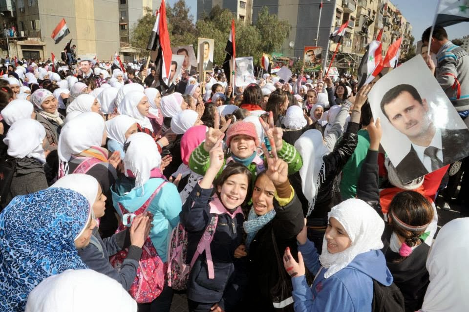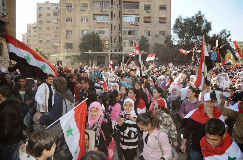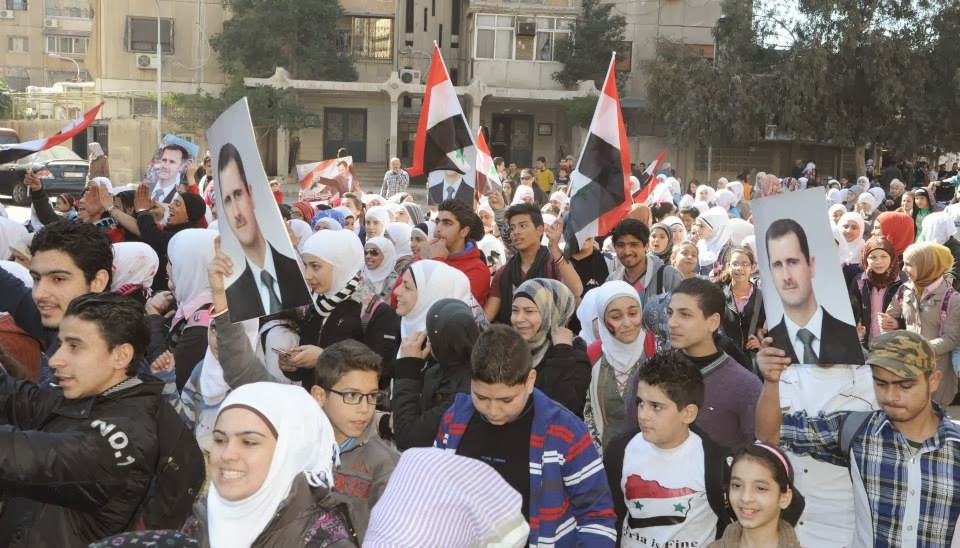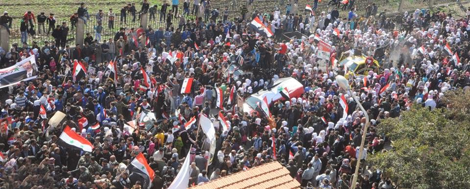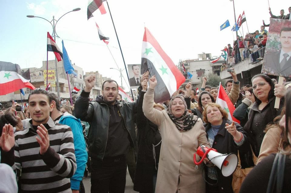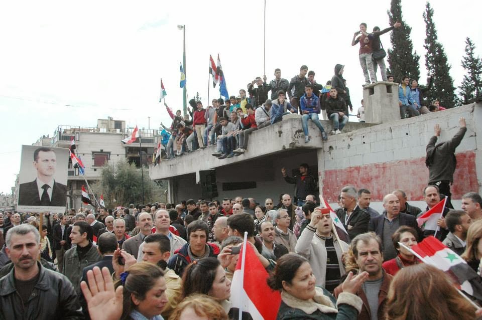 Homs Al İnsaat Beldesinde Beşar Esad ve Suriye Ordusuna Büyük Destek 11.02.2014