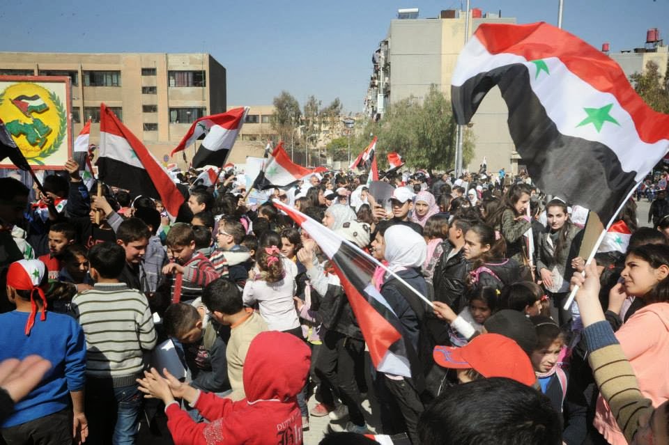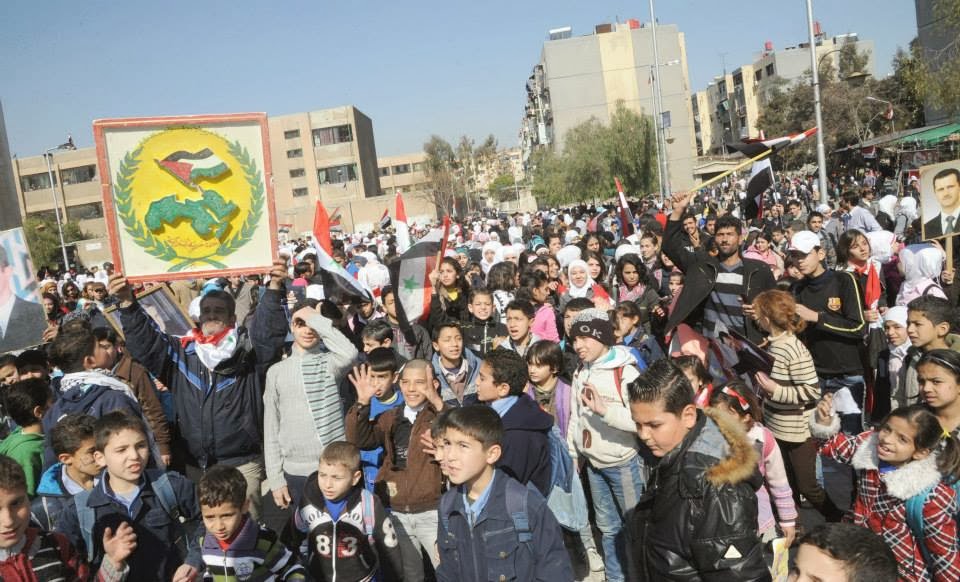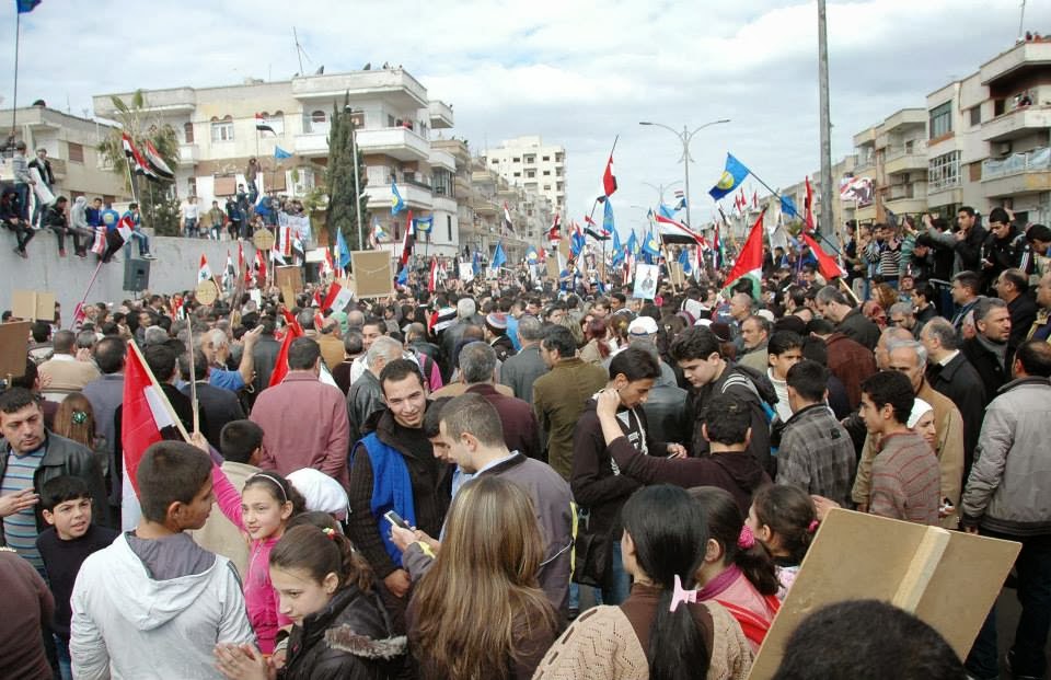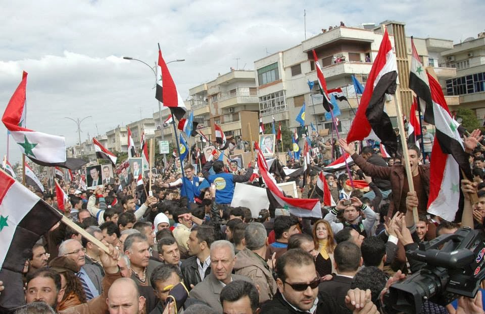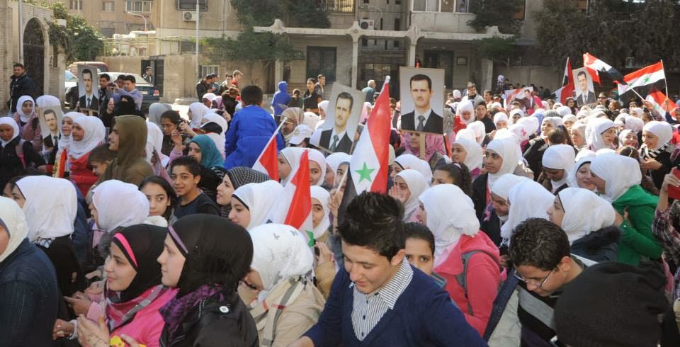 Homs Al İnsaat Beldesinde Beşar Esad ve Suriye Ordusuna Büyük Destek 11.02.2014