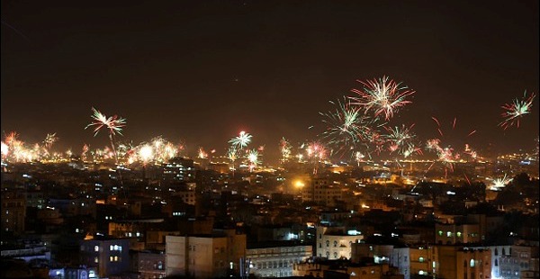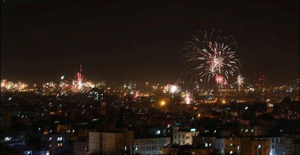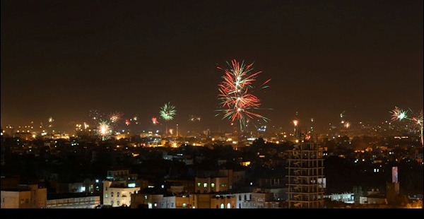 Yemen İslam devrimi havai fişeklerle kutlandı.