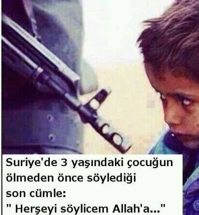 Çocuk “HER ŞEYİ SÖYLİCEM ALLAHA “demektedir