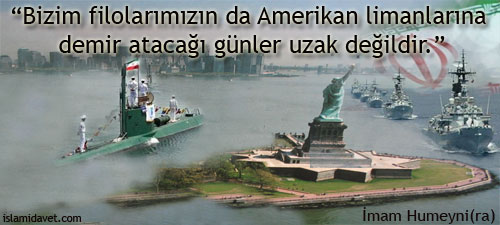 İmam Humeyni(ra)’nin sözü gerçekleşecek, İran savaş gemileri ABD sularına ilerliyor. İran İslam İnkılabı’nın müessisi İmam Humeyni(ra)’nin onyıllar önce söylemiş olduğu “Bizim filolarımızın da Amerikan limanlarına demir atacağı günler uzak değildir.” sözü günümüzde İslam İnkılabı’nın olağanüstü gücü ile gerçekleşmek üzeredir.