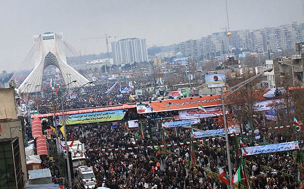 Soğuk fakat güneşli bir günde, saat 09:00 itibarıyle toplumun değişik kesimlerinin oluşturduğu gruplar ‘Amerika’ya ölüm’ ve ‘İsrail’e ölüm’ sloganları ile ‘Azadi (Özgürlük) Meydanı’na doğru yürüyüşe başladılar.