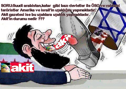 El kaide ve ÖSO gibi terör örgütlerinin gönüllü sözcüsü olan ve onların basın merkezi ciddiyeti ile çalışmaya gayret eden Akit gazetesi,halkların Suriye konusunda ve daha başka bir çok konuda gerçeği anlaması ile şaşkına dönmüş,desteklediği vahhabi,tekfirci ve Amerikancı terörist grupların ağır yenilgileri ile iyice paranoyak davranışlar sergilemeye,içindeki hastalıklı ve irinli mikrobu dışına vurmaya başlamıştır.Özellikle İran İslam cumhuriyetinin Nükleer alandaki başarısı ve kazanımları ile şaşkına ve deliye dönen İsrail ile tek yumurta ikizi gibi,eş zamanlı olarak nöbetler-krizler-buhranlar geçirmesi,Akit gazetesinin asıl maksadının ne olduğu ve aslında kime hizmet ettiği noktasında ciddi ip uçları vermiştir.