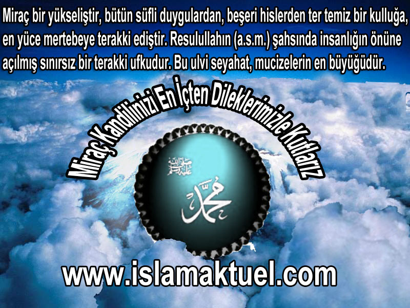 Dünya Müslümanlarının ve Mustazaflarının mübarek Mirac Kandilini ruh-u canımızla tebrik ederiz. Mirac Kandili 5 Haziranı 6 Hazirana bağlayan Çarşamba gecesi idrak edilektir. Feyiz ve bereketin coştuğu mübarek gecelerimizden biri de Miraç Gecesidir. Miraç mucizesi Kur’ân-ı Kerimde âyetlerle anlatılmış ve varlığı inkâr edilemeyecek bir şekilde ortaya konmuştur. Bu îlâhî yolculuğun ilk merhalesi olan Mescid-i Aksâya kadarki safha Kur’ân’da şöyle anlatılır:
