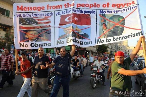 25 Ocak 2011 tarihi ile sembolleşen şanlı Mısır kıyamı hız kesmeden devam ediyor. Geçtiğimiz günlerde Tahrir meydanında taşınan bir pankart Mısır halkının mesajını tüm dünyaya ulaştırdı. Mesajda “ABD halkına evet, Obama’ya hayır, Türkiye halkına evet, Erdoğan’a hayır, Terörizme hayır, Terörizme hayır” denildi.