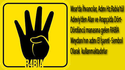 Mısırda Cuntanın halk katliamı yaptığı meydanın Adı olan “Rabia” yani (4) Mısır İhvancıları’nın sembolü olarak kullanılmaya başlandı.