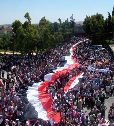Mehrem el-Fukani Kentinin ana meydanında toplanan kalabalık halk kitleleri, ellerindeki vatan bayrakları ve dış komploya karşı yönetimlerinin etrafında kenetlendiklerini vurgulayan pankartlarla ulusal sloganlar atıp marşlar söyledi.