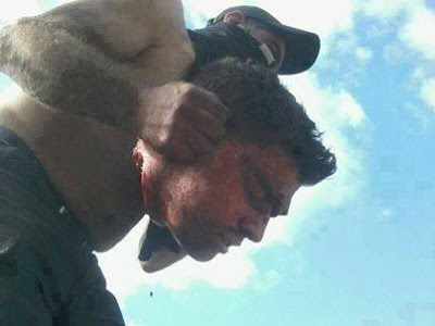 Türkiye tarafından düşürülen suriye helikpoterinin pilotları suriye muhalifi teröristlerin eline geçti,Tekbirler eşliğinde suriyeli pilotların kafası kesilerek Şehid edildiler.